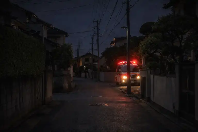 赤色灯が消え、住宅街は元の静けさに戻る。
