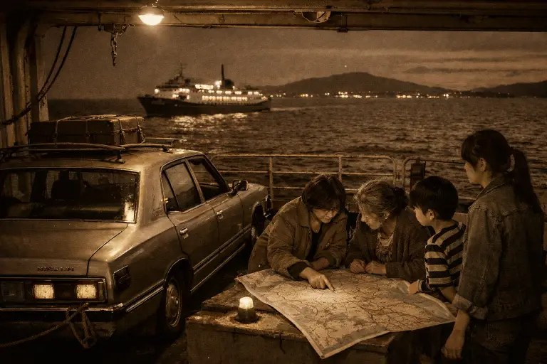 日産グロリアに荷物を積み、青函連絡船で本州へ。