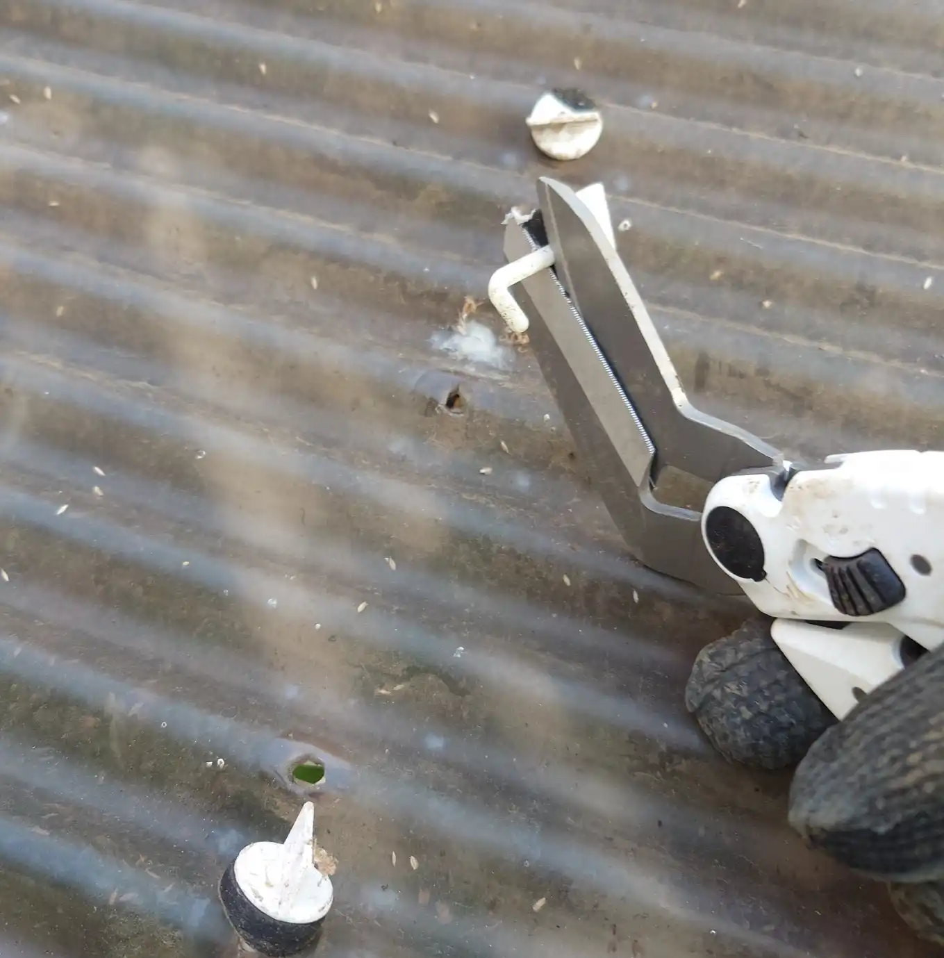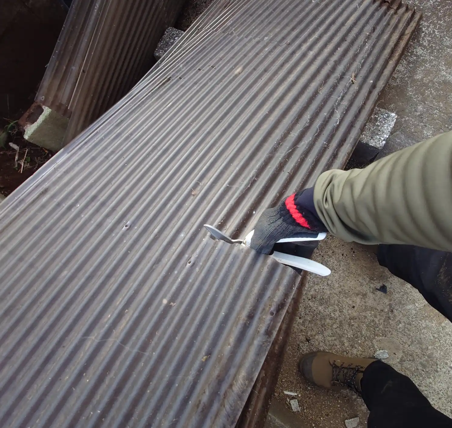小さな軽自動車には積めるわけもなく、波板ははさみでカット。波板は厚みがあり切りづらい。波板切はさみを買ったので今度使ってレビューしてみる。
