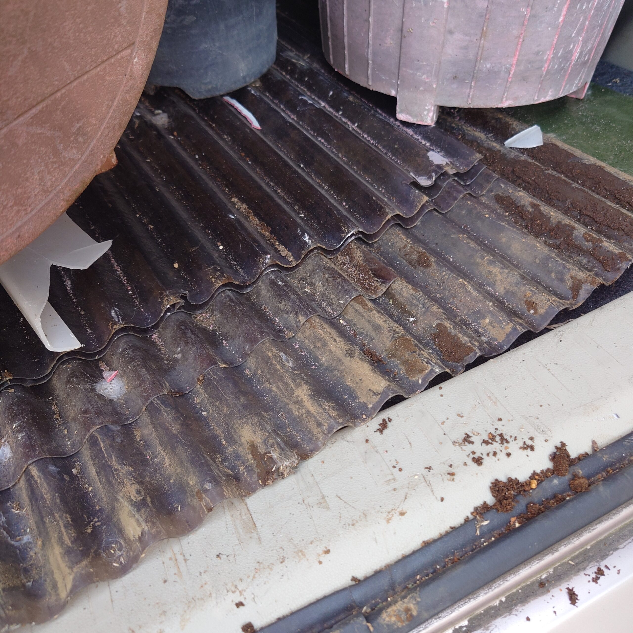 『異物が付いているから無理です』とハネられないように留め具も外してプレーンな状態の波板にして持ち込みする。